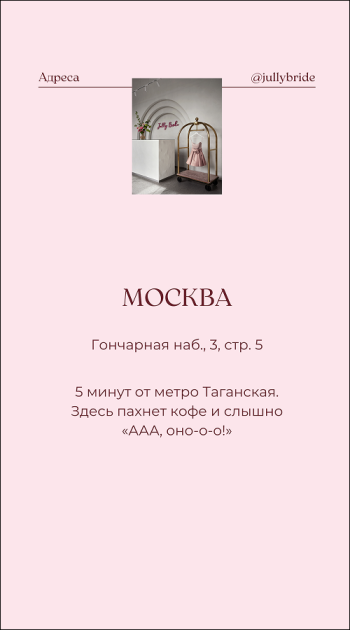 Я очень рада, оставить отзыв с настолько положительными впечатлениями! Для каждой девушки — выбор свадебного платья важная и по-особенному трогательная задача. В Джулли Брайд я попала случайно по совету знакомой, потому что «там всё такое розовенькое и красивое»! И я осталась в восторге!!! Мне помогала замечательная Дарья. Такой заботливый и внимательный сервис нужно ещё поискать!