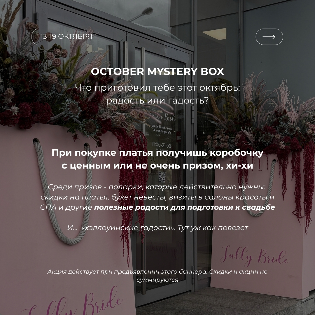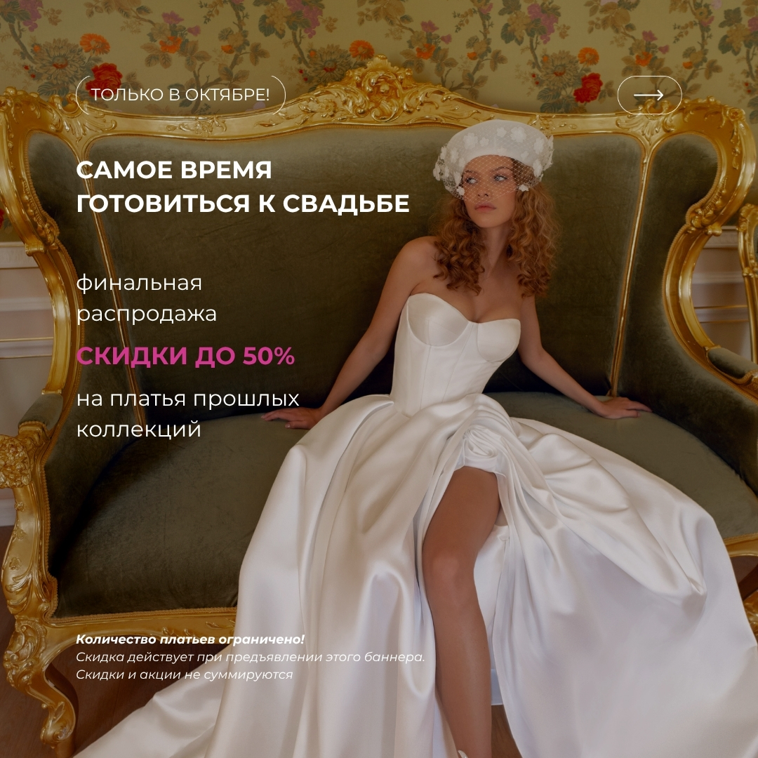 Октябрь — месяц скидок и выгодных предложений. Самое время готовиться к свадьбе❤️