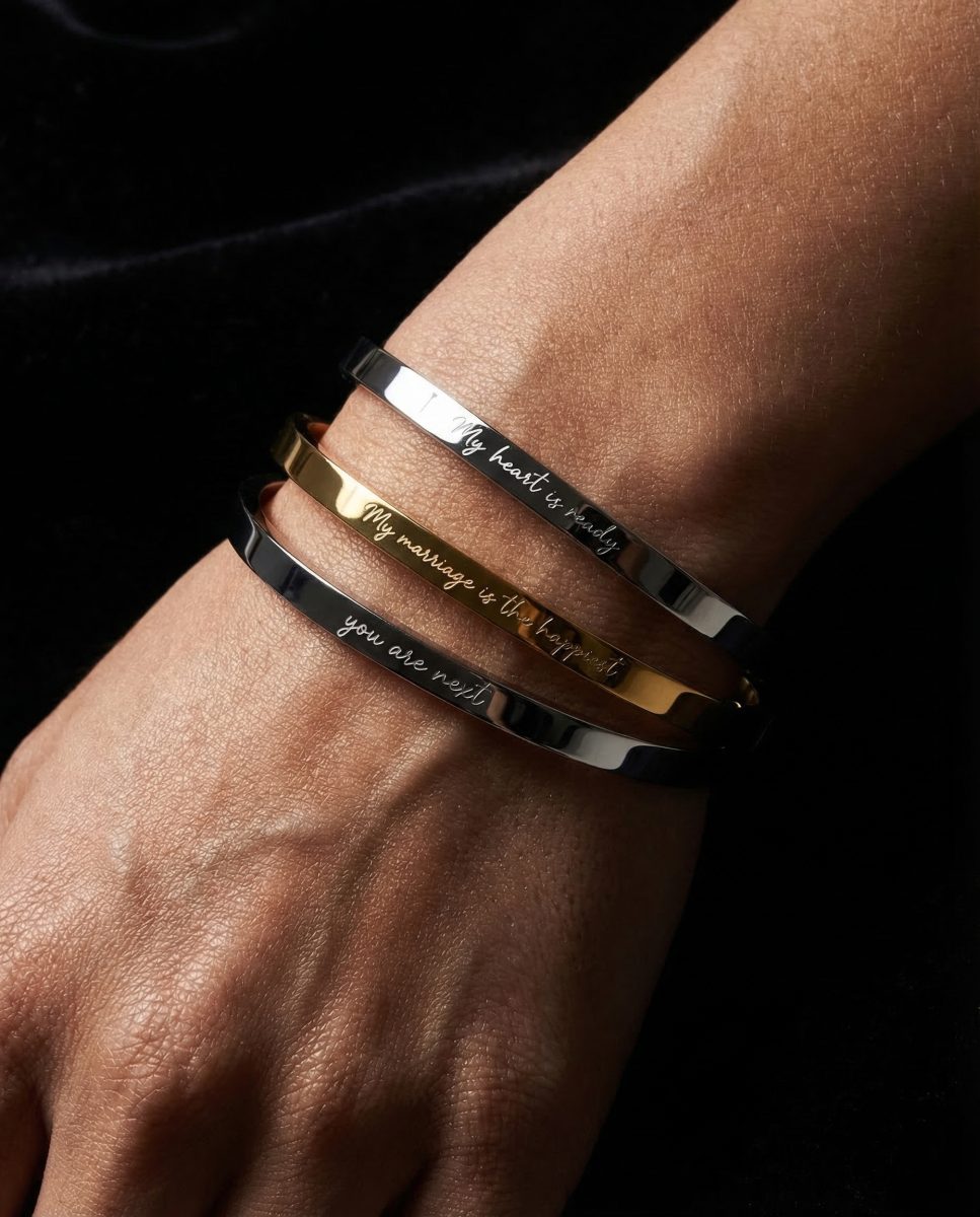 Так появились браслеты любви — коллекция из четырех браслетов с самыми сакральными фразами-аффирмациями. Каждая фраза выгравирована вручную и несёт своё значение.