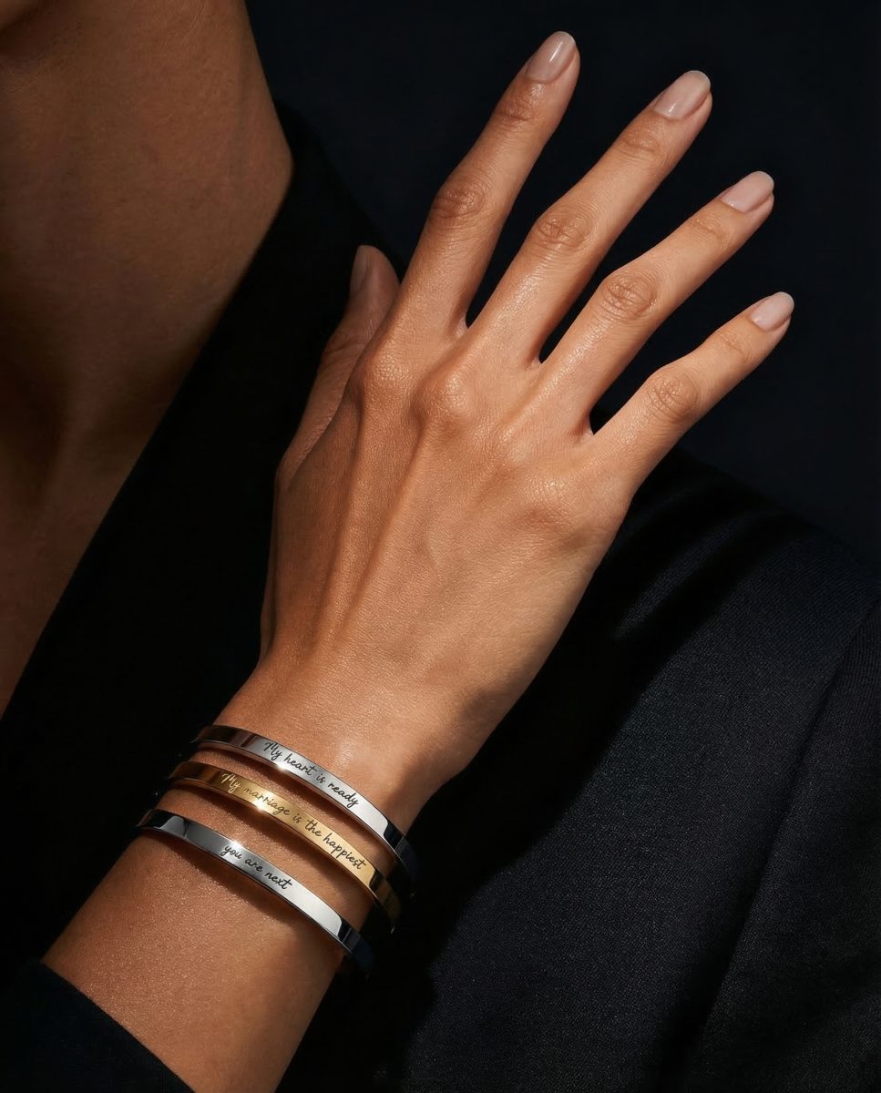 Психологи давно говорят о силе аффирмаций. Когда фраза выгравирована на браслете и каждый день касается твоей кожи — она становится частью тебя. Каждый взгляд на запястье возвращает к своему намерению, своему выбору. Тихое, но настоящее волшебство.