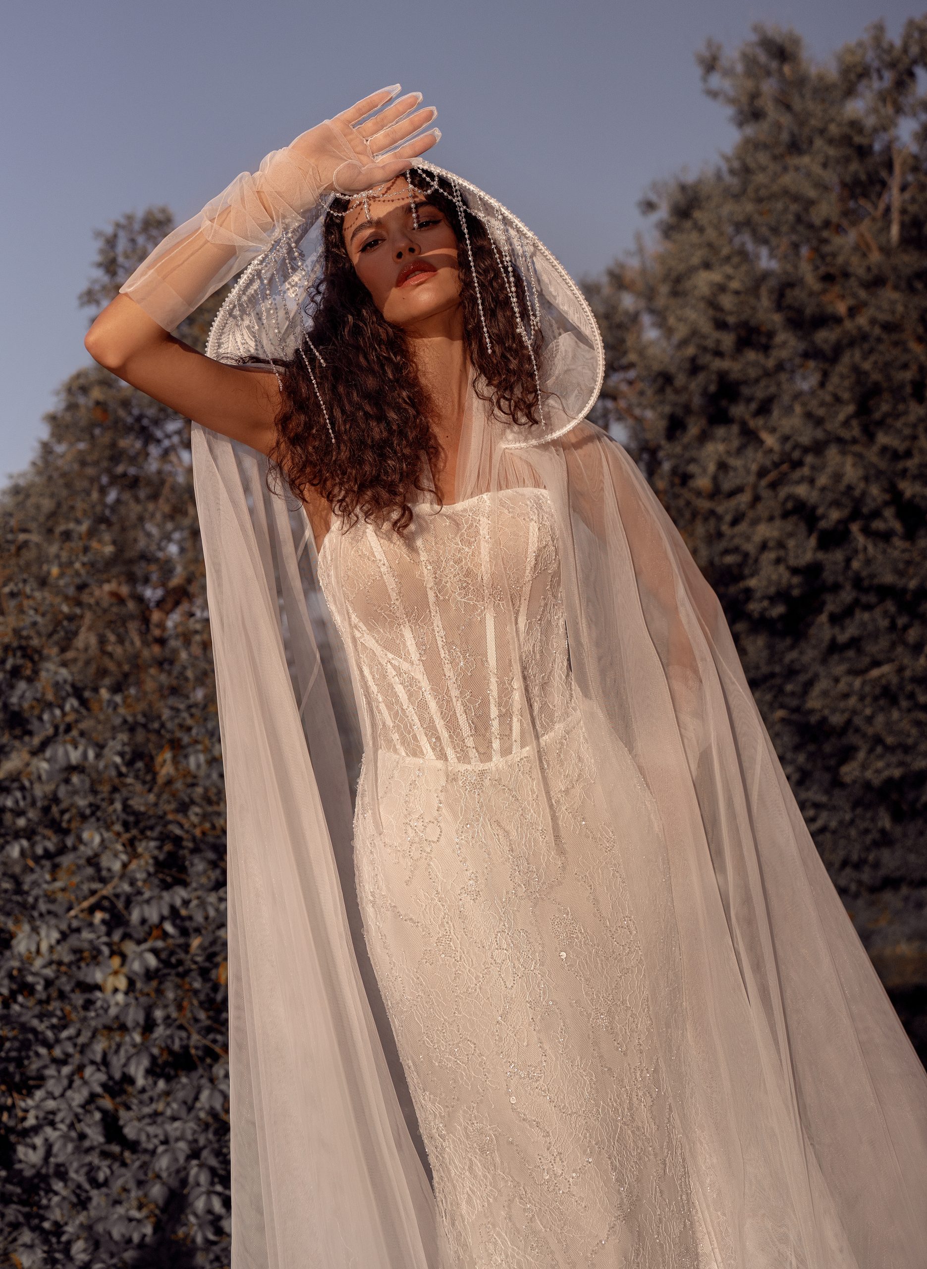 Свадебные платья сшиты из материалов, создающих эффект мерцания. В коллекции наряды из глянцевых материалов, из воздушных тканей с блестками, глиттером, стразами, с вкраплением жемчужного бисера или украшенных паетками.