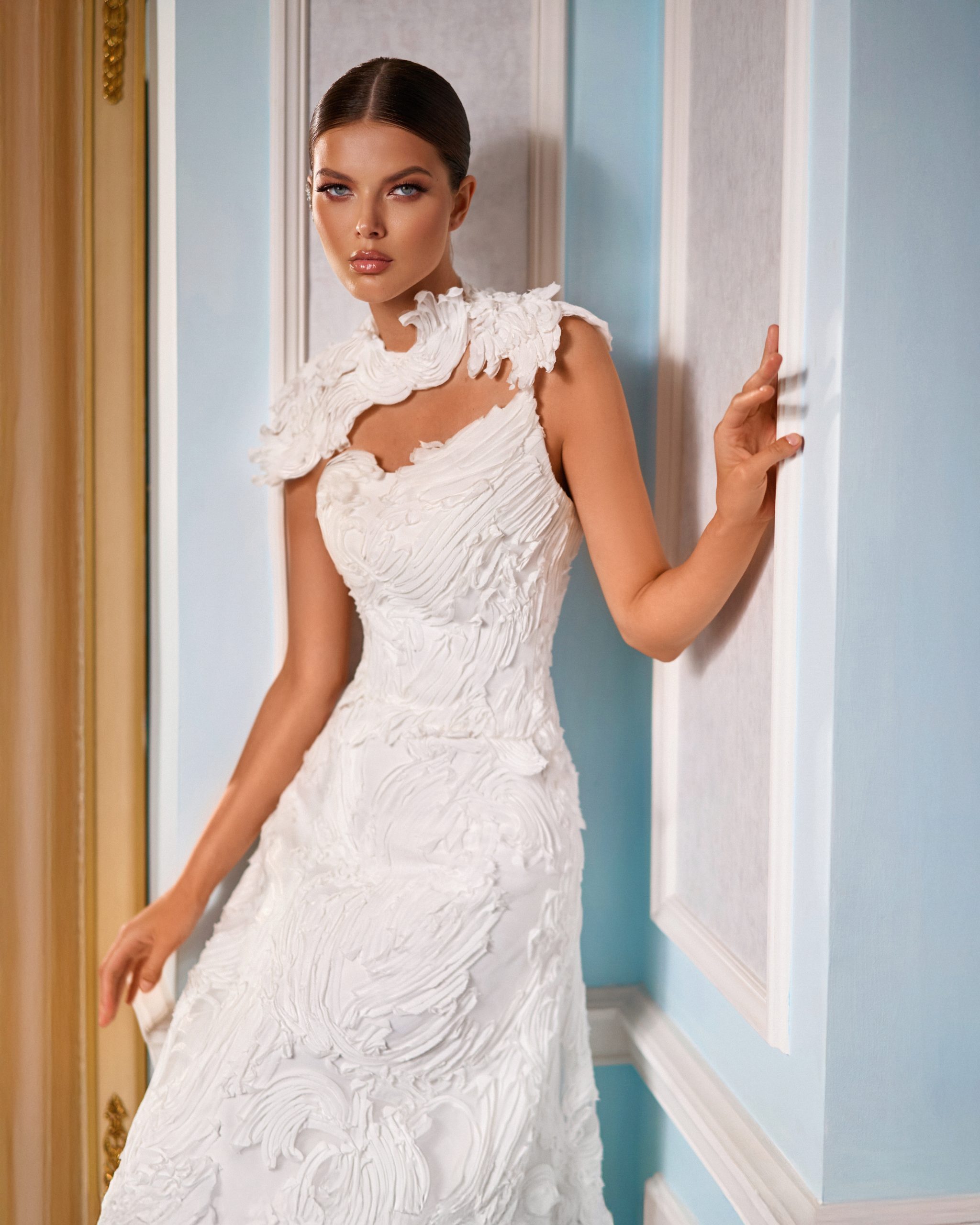 Айсберг — для невесты, которая знает себе цену и не боится быть в центре внимания. Без кружева, без фатина, без стандартных решений. Только архитектура ткани и твоя сила внутри. Современная классика для свадьбы в дворце, в отеле, на церемонии, где важна каждая деталь