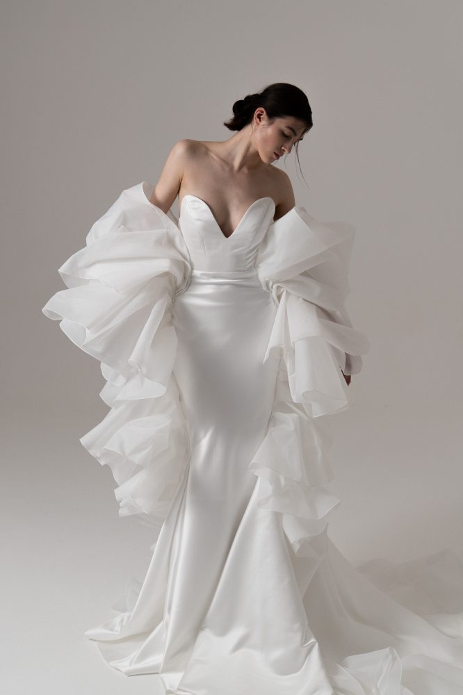 Такое свадебное платье подойдет как для классической свадьбы, так и для торжества в стиле модерн или минимализм.
