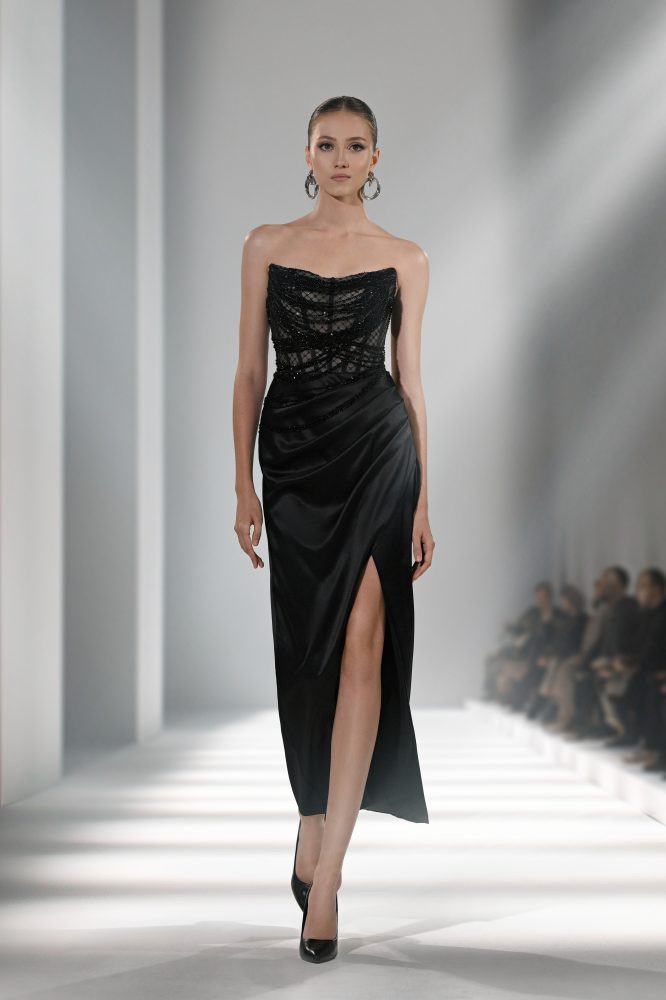 Современный силуэт со стильной спинкой. Сдержанный фасад сочетается с открытой спиной, украшенной архитектурным каскадом из объемных цветов. Прямая посадка и плотный атлас идеально подчёркивают фигуру. Подойдёт для городской церемонии, торжеств в современном интерьере и второго свадебного выхода.