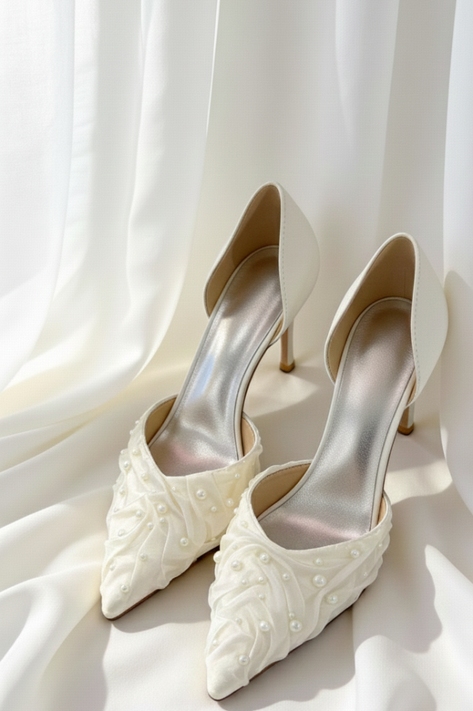 Нежные туфли с изящным декором из бисера и жемчужных элементов создают ощущение лёгкости и утончённого блеска. Акцентная отделка смотрится воздушно и деликатно, красиво дополняя светлый, собранный силуэт модели. Каблук аккуратный и устойчивый — для уверенности в каждом шаге.