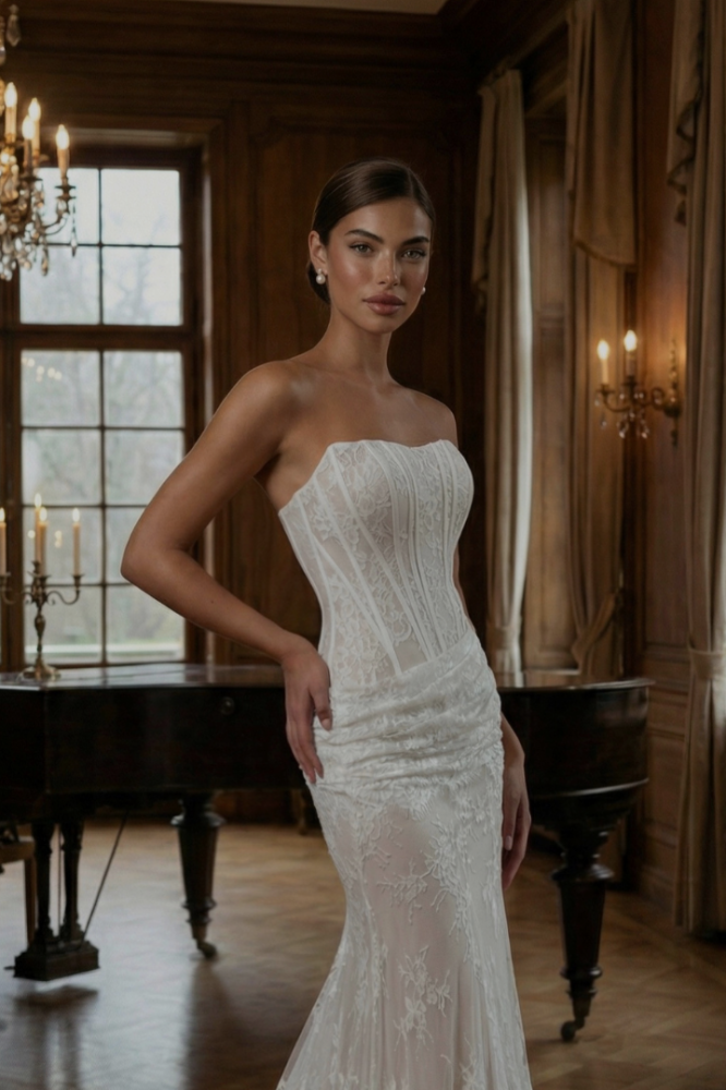 Роскошное свадебное платье на бретельках с разрезом и болеро. Прекрасный вариант для оригинальных невест, которые хотят отойти от классики и выглядеть необычно и стильно