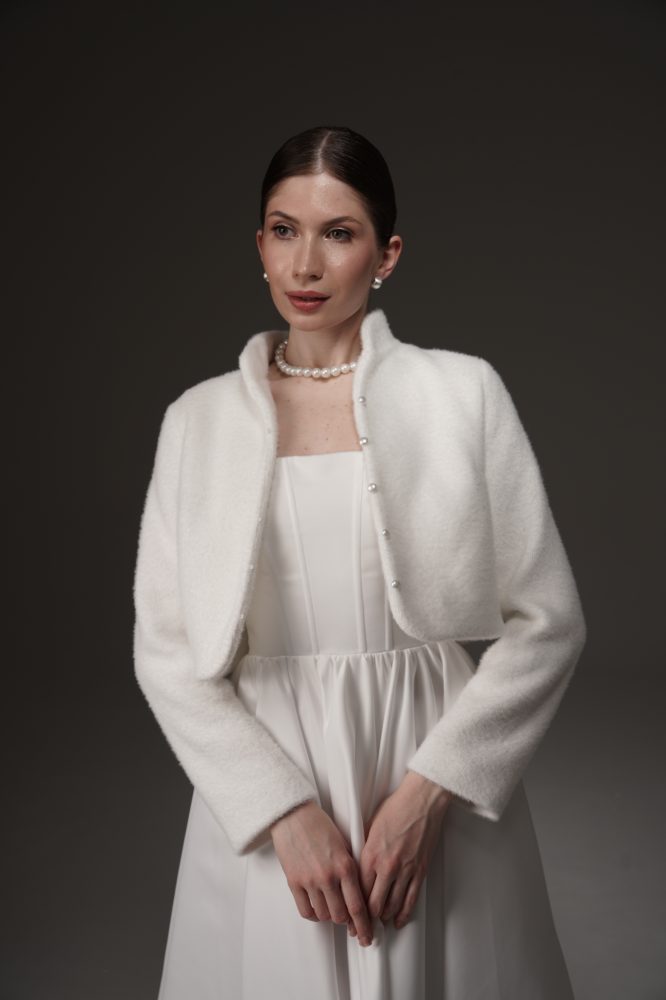 Лаконичный свадебный комплект со спущенными бретельками из атласа для тех, кто любит естественность. Платье подчеркнет все достоинства твоей фигуры, а открытые плечи добавят женственности.