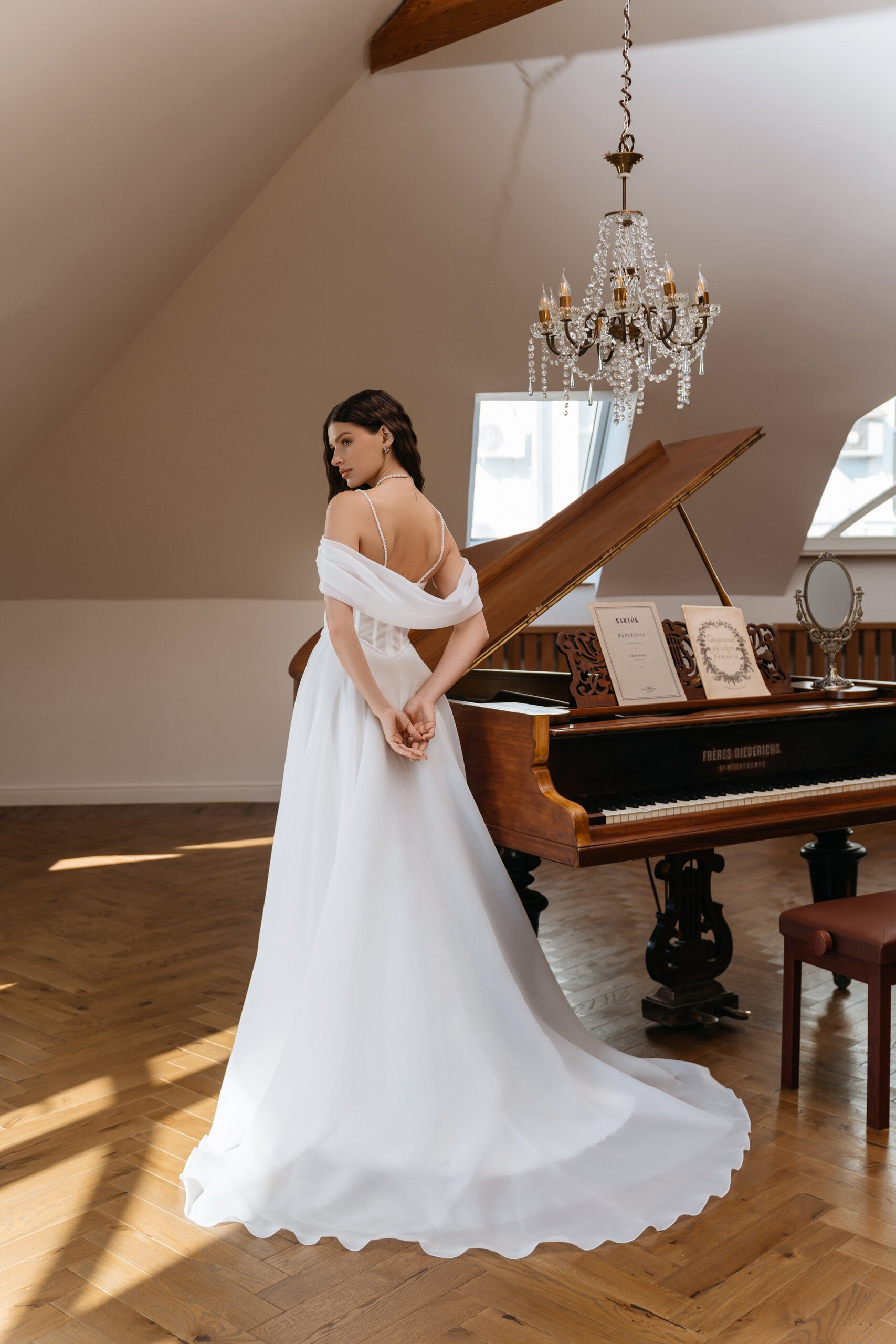 Это платье для невесты, которая выбирает чистые линии, светлую эстетику и уверенность без лишних акцентов.