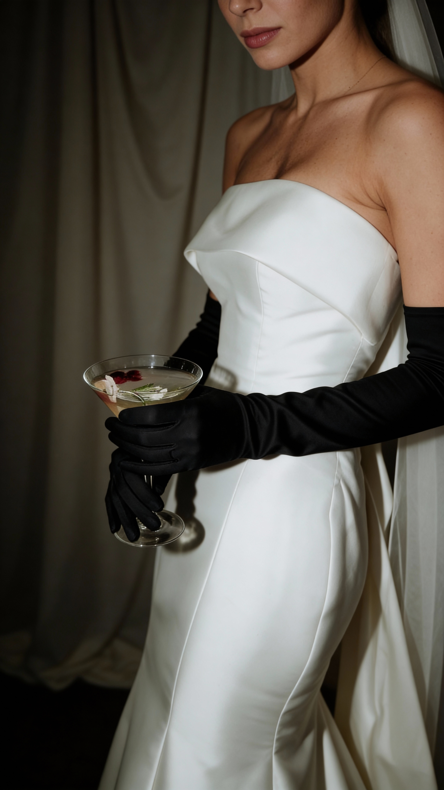 Длинные чёрные перчатки становятся сильным стилистическим жестом в образе. Чистые линии, матовая текстура и безупречная посадка создают ощущение кинематографичной элегантности и сдержанной роскоши. Такой аксессуар сразу добавляет характер и делает образ взрослым, смелым и запоминающимся.