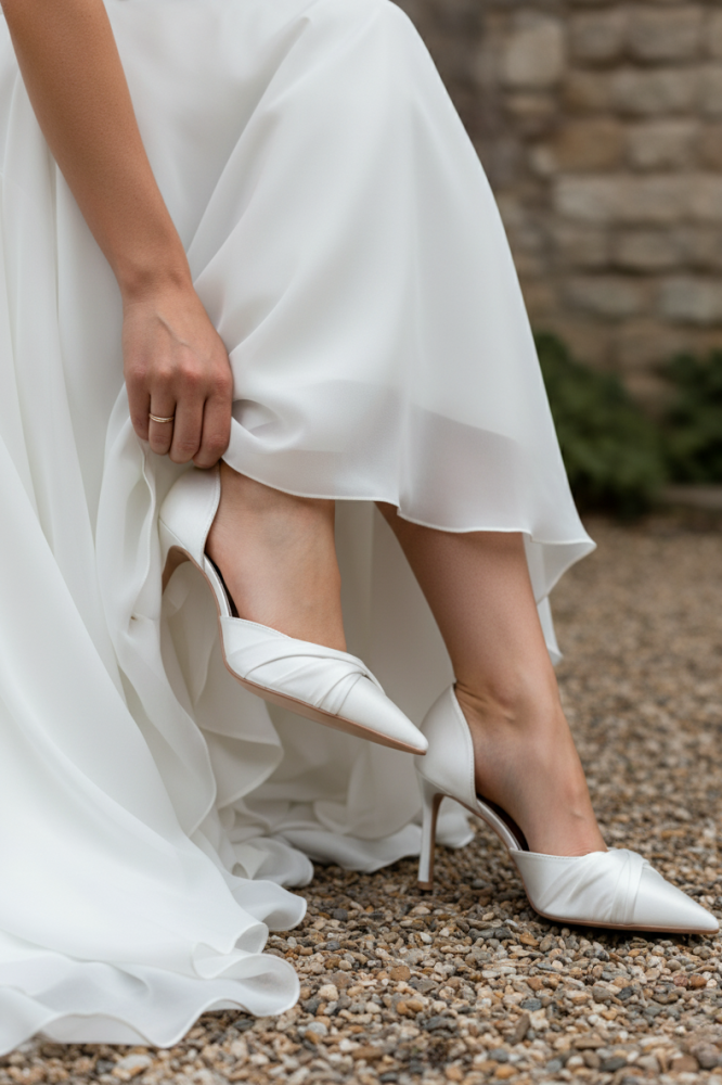 Стильные туфли для романтичных невест с легким бантом.