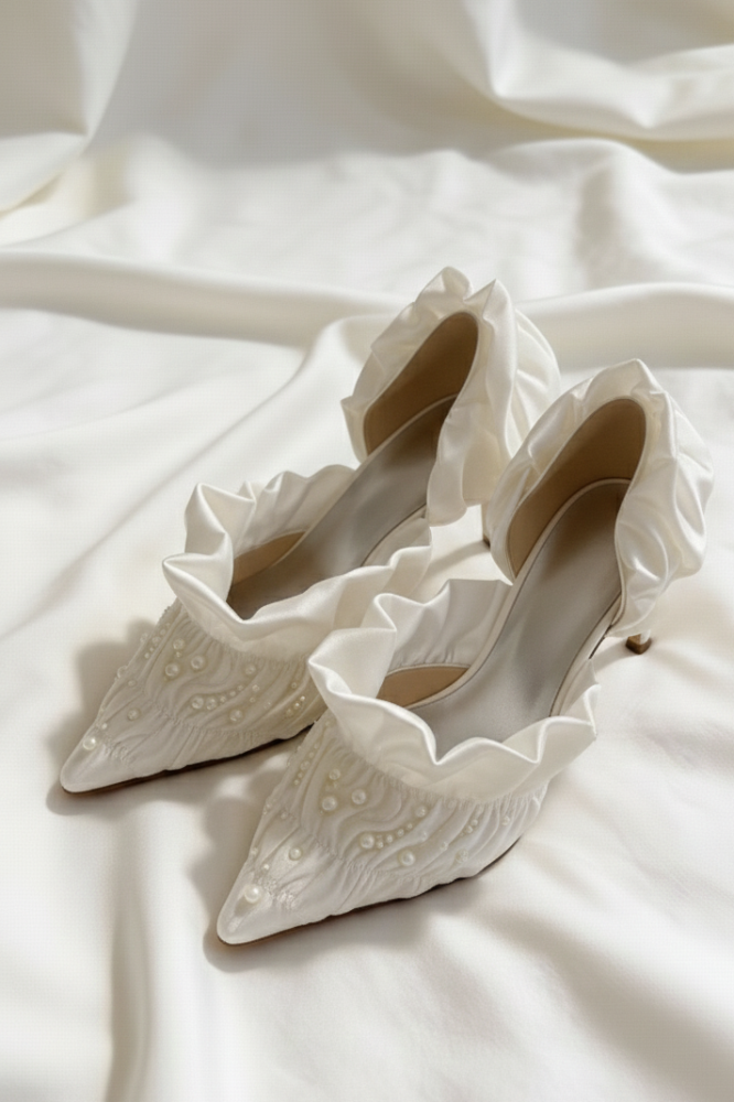 Свадебные туфли с нежным кружевом.