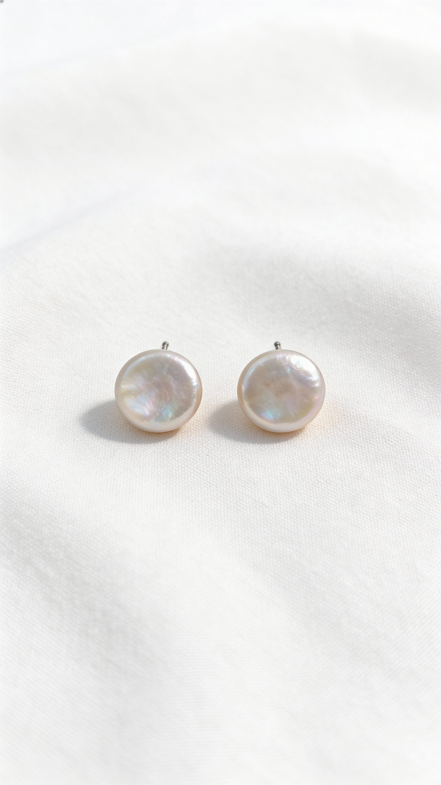 Серьги с перламутровыми жемчужинами, которые ловят свет и мягко подсвечивают лицо. Идеальны для образов, где важна чистота линий и ощущение утончённости — свадебных, вечерних или повседневных с акцентом на детали.