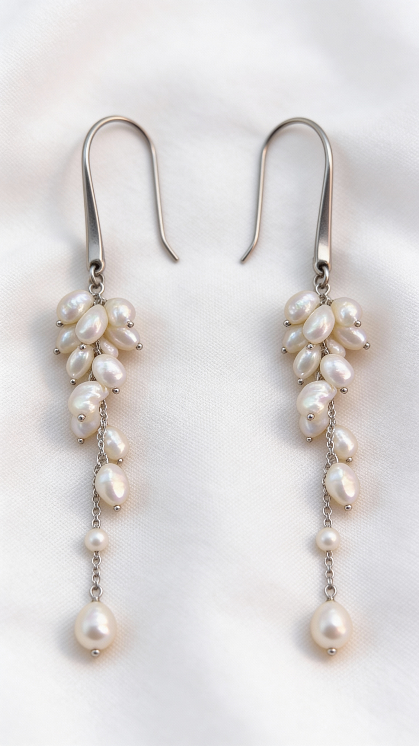 Украшение, которое собирает образ без лишних слов. Подвижные жемчужины красиво откликаются на движение и мягко подсвечивают лицо.