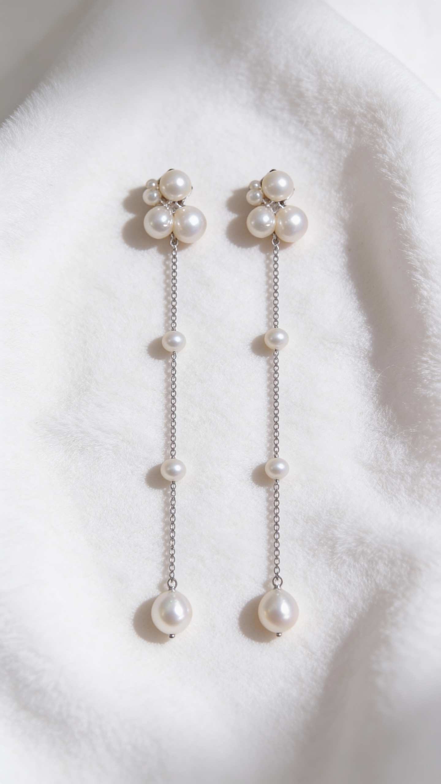Серьги, которые ловят свет и каждое движение. Они вытягивают силуэт, подчёркивают линию шеи и добавляют образу живости, игривости и чувственности.