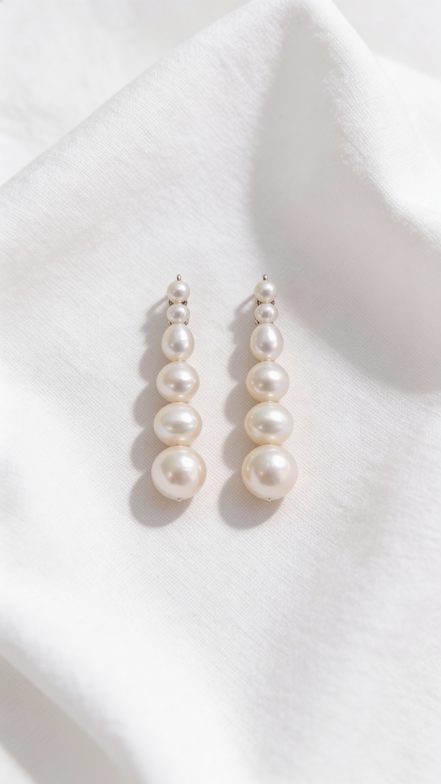 Серьги с жемчужными подвесами мягко движутся при каждом шаге, добавляя образу глубину и деликатное сияние. Разная форма и размер жемчуга создают ощущение естественности и лёгкой, непринуждённой элегантности.