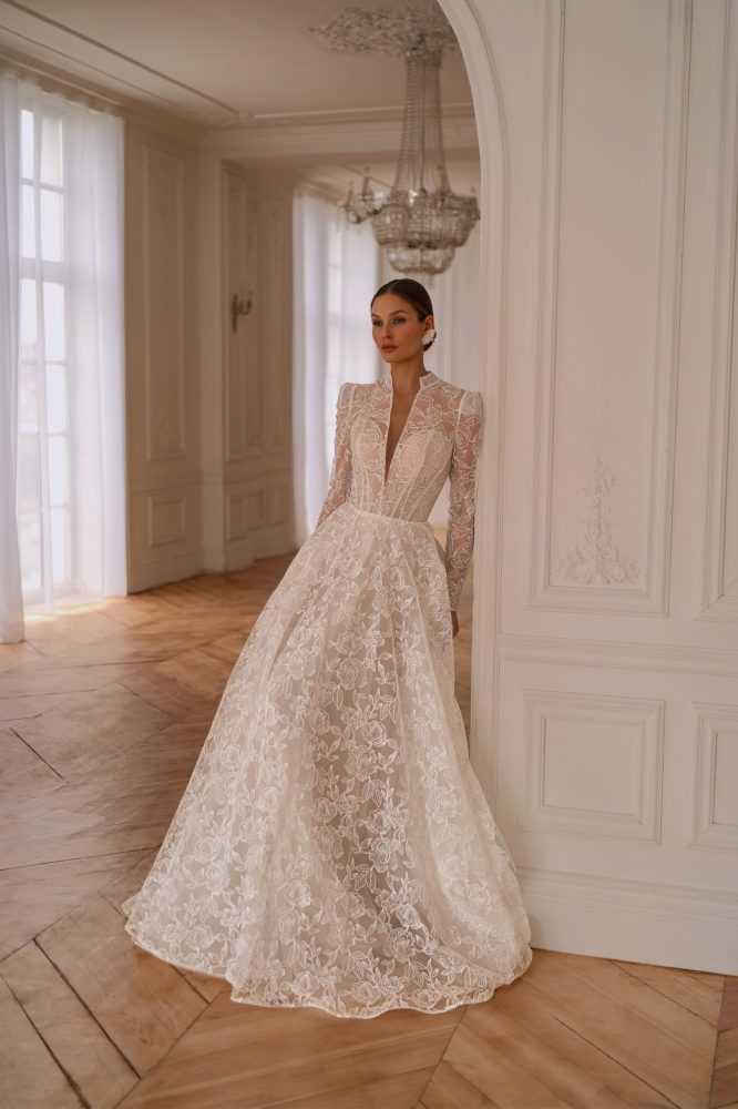 Монохромный дизайн платья смотрится максимально стильно, придавая образу невесты нотку благородного шарма