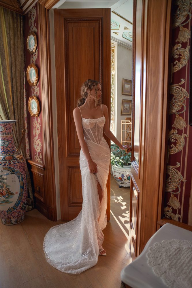 Высокий разрез добавляет лёгкой дерзости, превращая платье в символ силы, женственности и смелой элегантности.