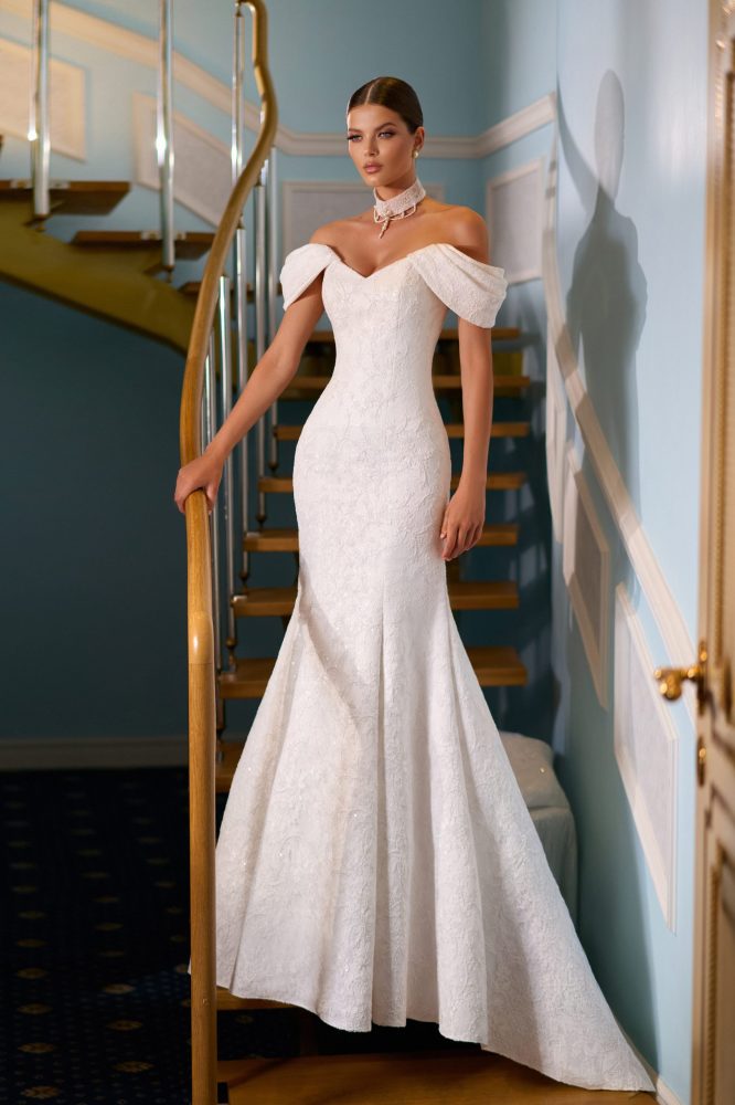 Платье, в котором элегантность и драматичность соединяются в идеальный баланс. Скульптурный силуэт подчёркивает фигуру, а объемные воланы по линии декольте создают настоящий вау-эффект. Это платье не требует украшений — оно само как произведение искусства.